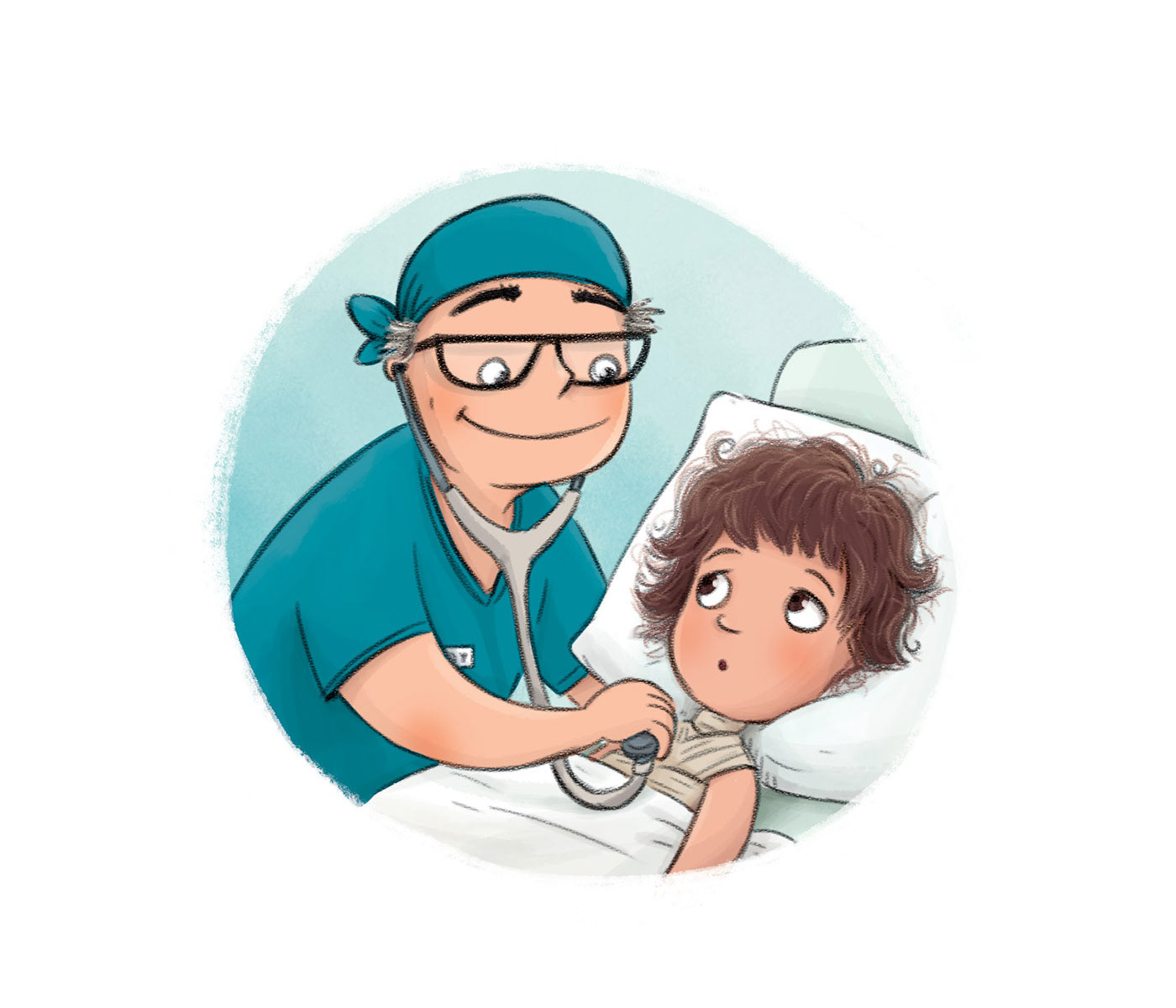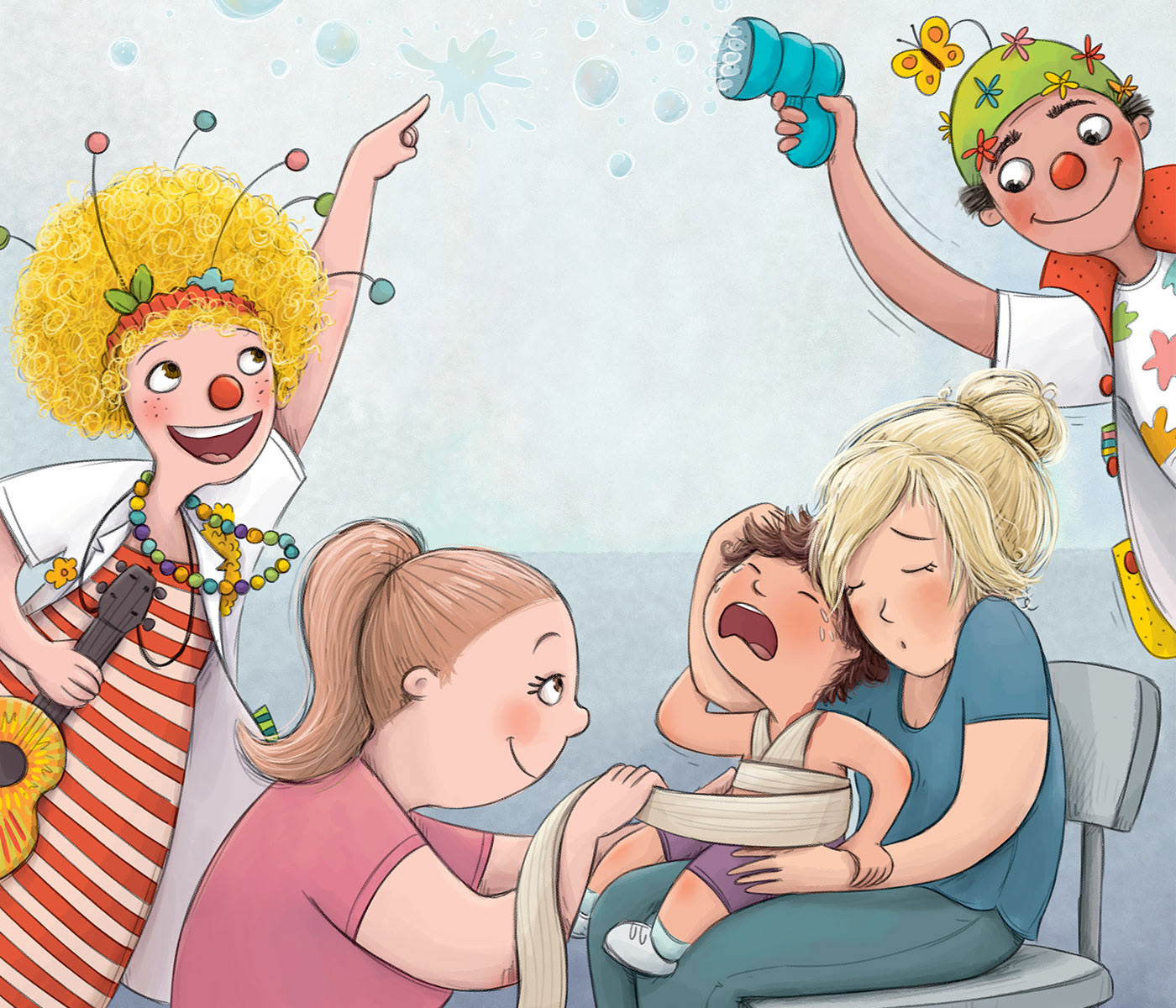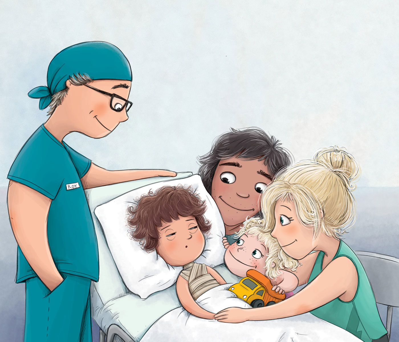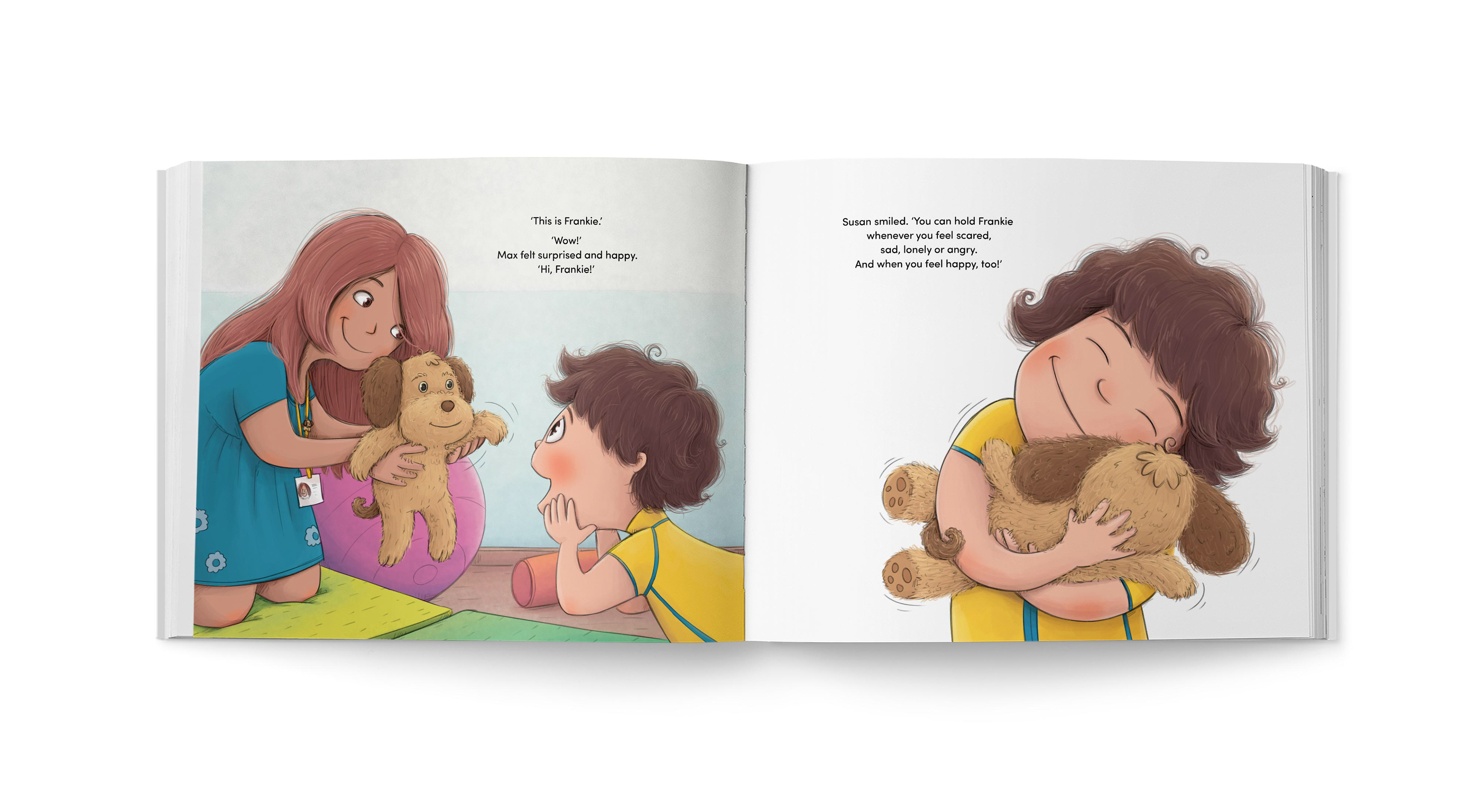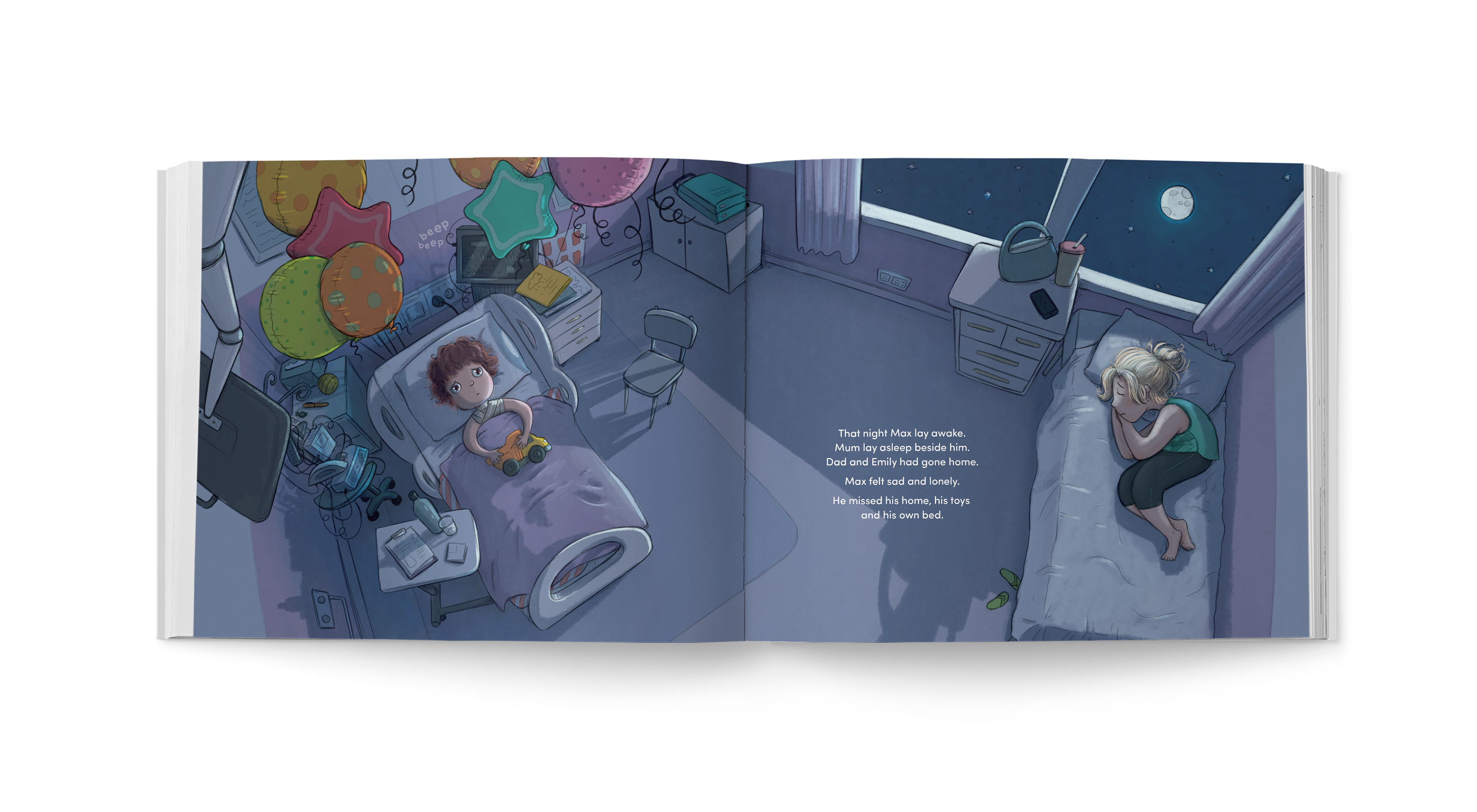 Oh no! Max has been burnt by hot tea. Everyone at the hospital does something different to help. But there's someone who does a very special job, helping Max be brave.