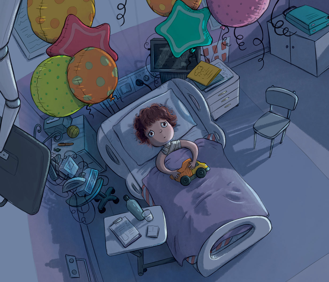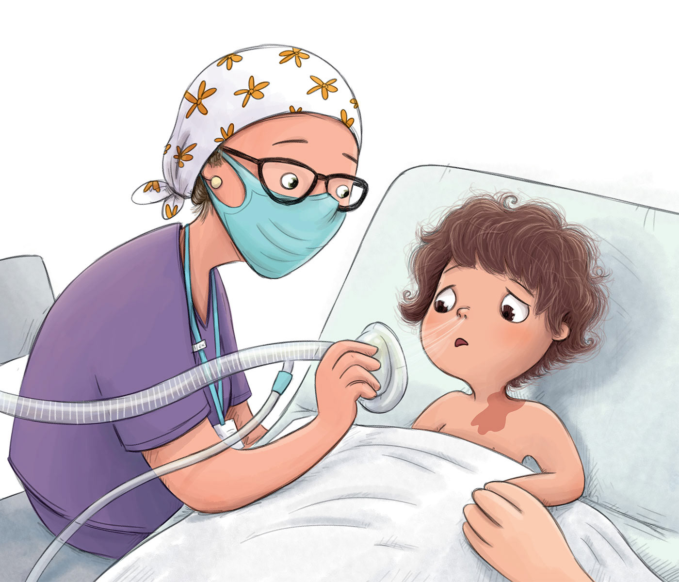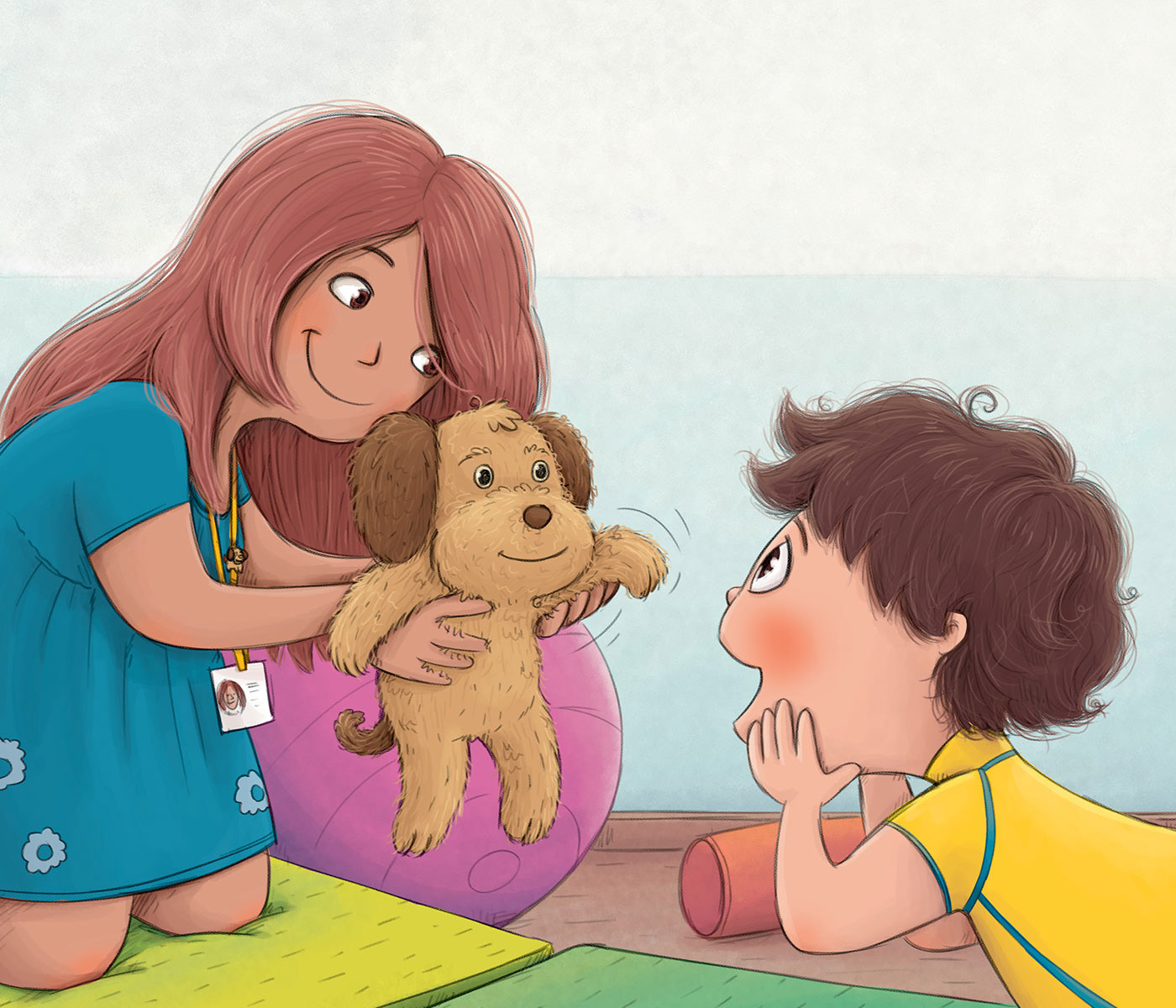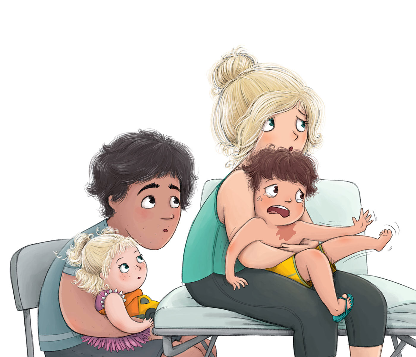 Oh no! Max has been burnt by hot tea. Everyone at the hospital does something different to help. But there's someone who does a very special job, helping Max be brave.