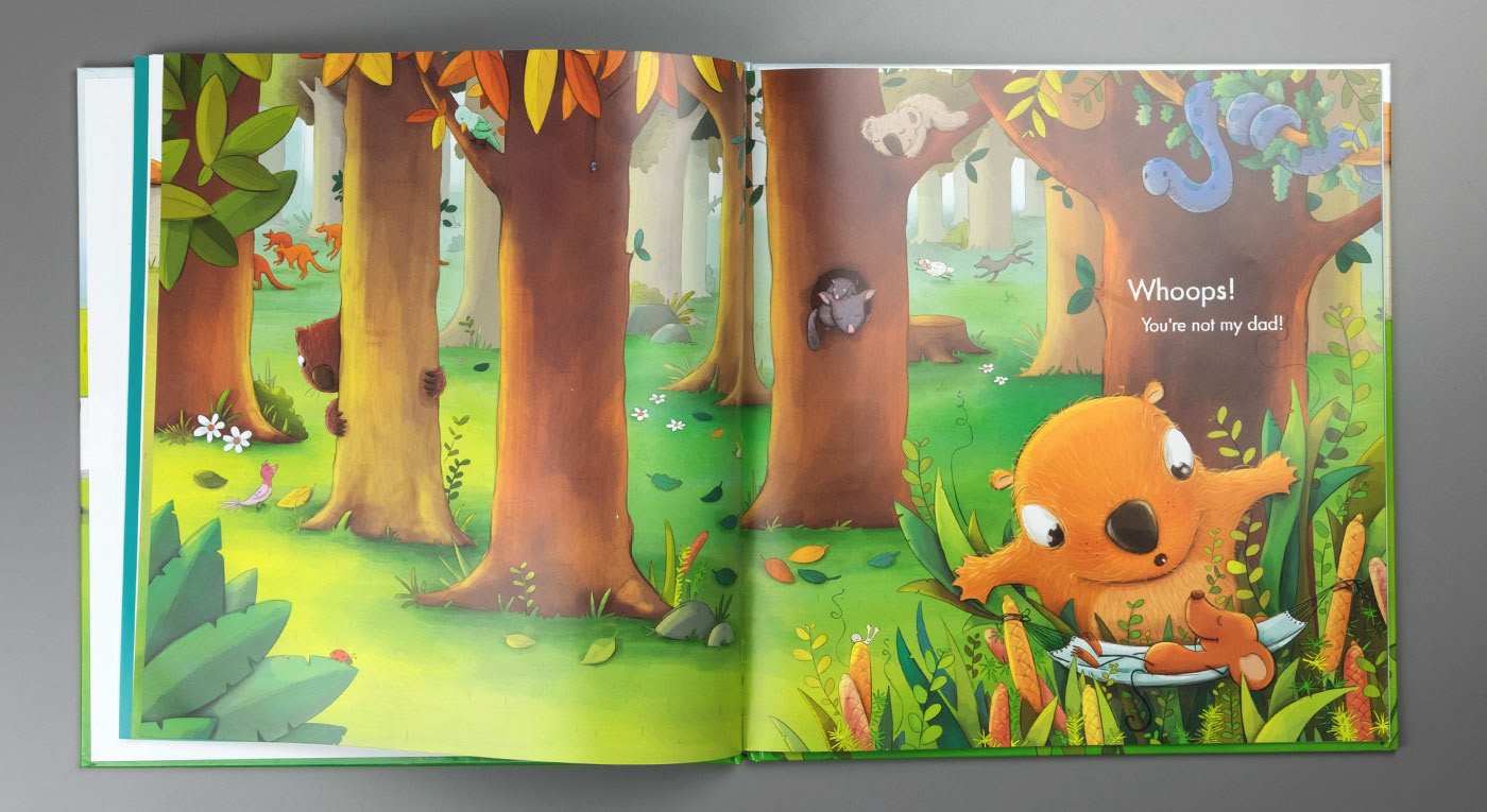 Little wombat can't find him anywhere! Dad is not at home, he's nowhere to be seen at the beach, and he's definitely not hiding in the garden. Can you see where Dad is hiding?